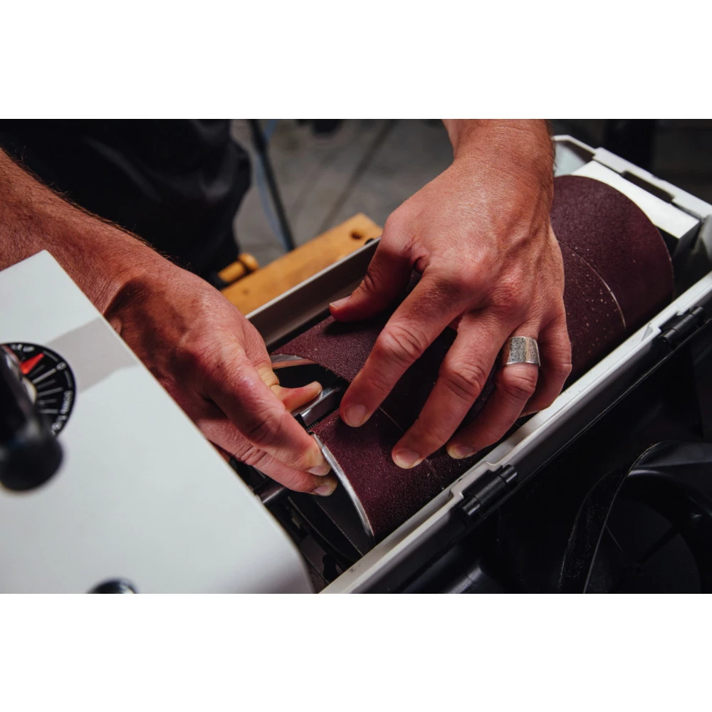 - Tool-less abrasive take-up fasteners make changing abrasives quick and easy