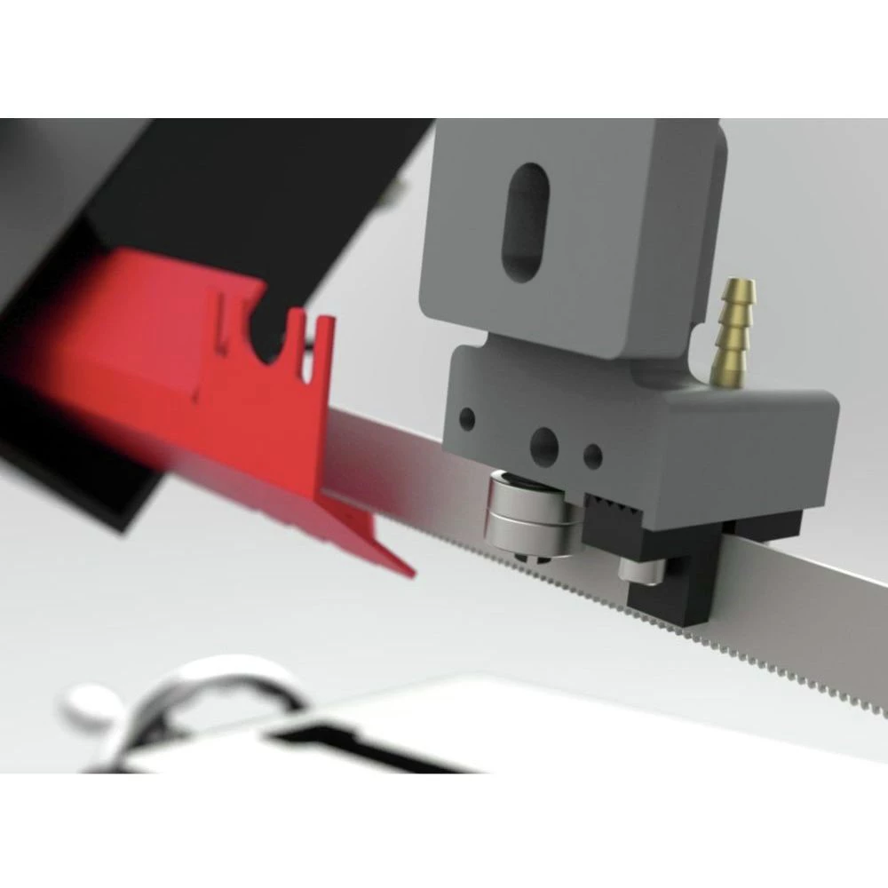 - Tungsten carbide blade guides with precision bearings, stabilizes the blade for increased accuracy and extendes blade life