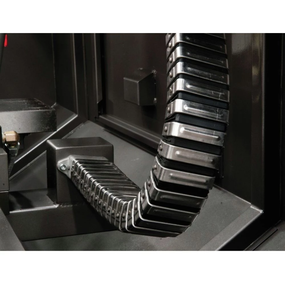 - Fully lit with CNC style lighting, the enclosed full length splash guard is expertly designed to contain all chips and coolant