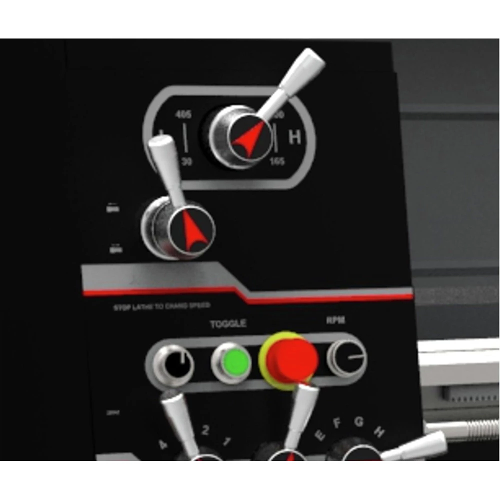 - Hardened and ground gears in headstock reduce vibration and deflection