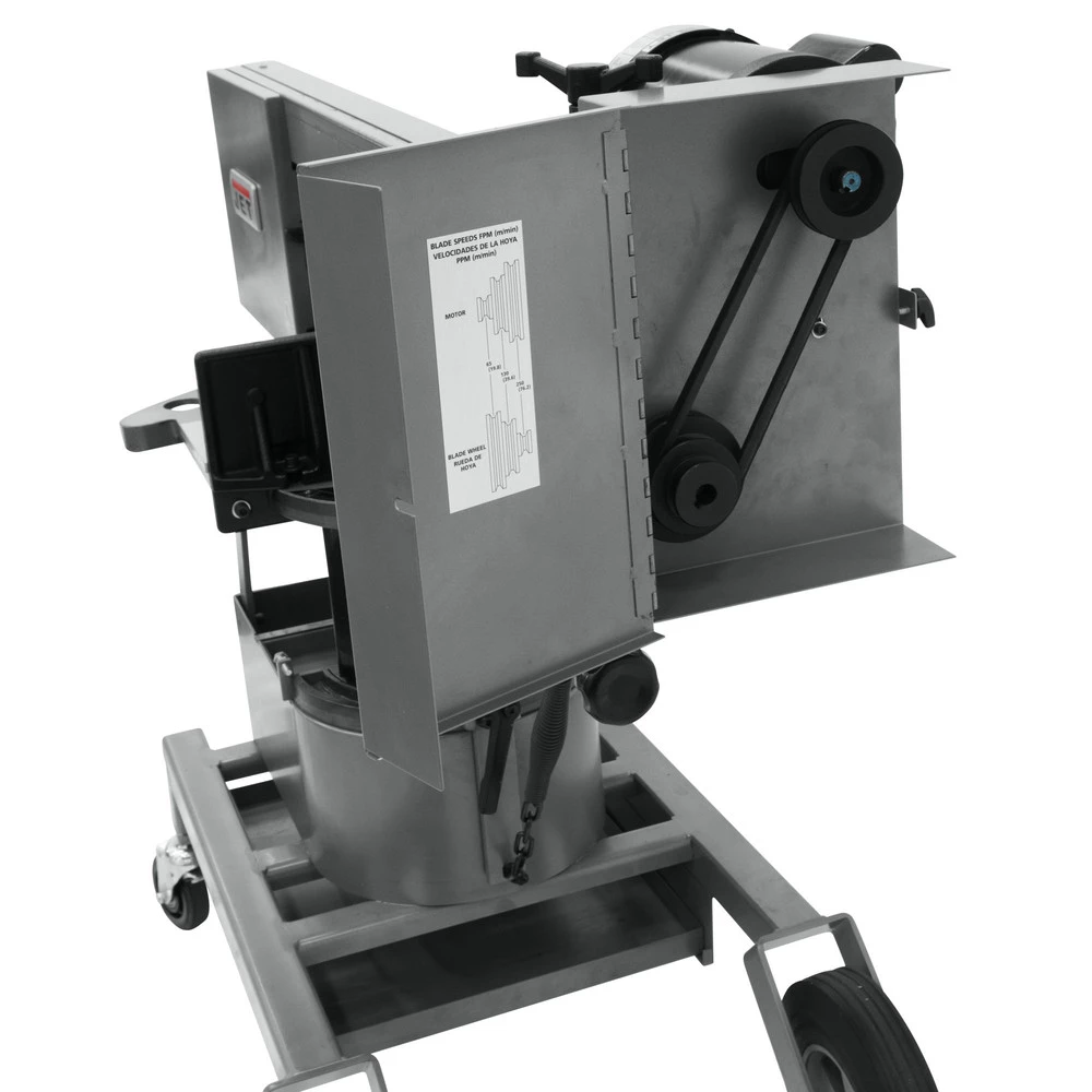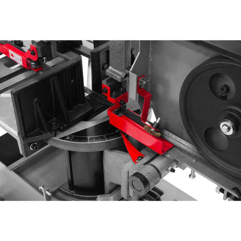 - Built in, self propelled blade brush prevents chip build up in blade guides