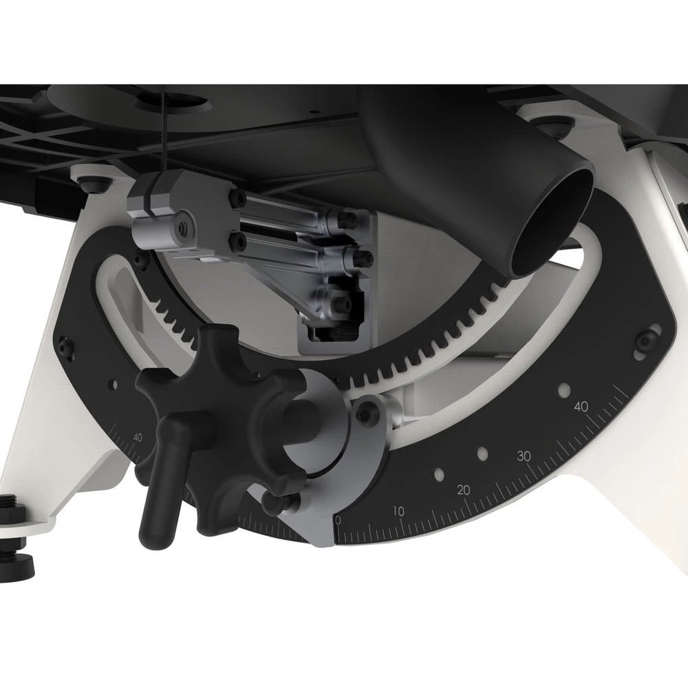 - Arm tilts 45 degrees right and 40 degrees left, keeping the work table flat for more accurate cutting